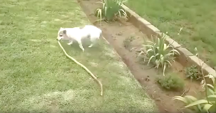 The snake doesn't got the chance to fight back because the attack. Before it gets the chance to control itself, the dog quickly grabbed its tail, prompting another round of attacks.